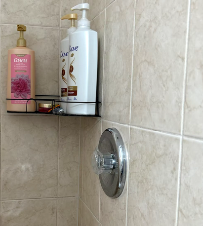 Thanks to its sturdy construction, the shelf can hold up to 10 kg (22 lbs), ideal for storing shampoos, soaps, and other essential products without the risk of falling.